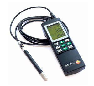 風速儀是指將流速信號轉變為電信號的一種測速儀器,可測量流體溫度或密度。熱式風速儀原理是:將一根通電加熱的細金屬絲置于氣流中,熱線在氣流中的散熱量與流速有關,而散熱量導致熱線溫度變化而引起電阻變化,流速信號即轉變為電信號。熱式風速儀的主要部件是風速探頭及測量指示儀表。其中風速探頭又可分為熱敏式探頭和輪轉式探頭。熱式風速計按結構分,有熱球式和熱線式;按顯示形式分,有指針式、數字式等;按工作原理分,有恒流式和恒溫式。
