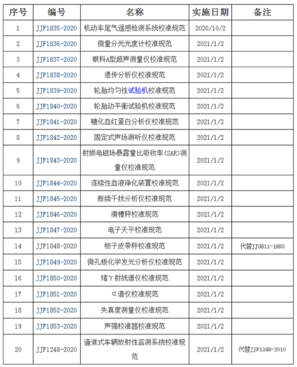 2020年7月6日,市場監督管理總局發布了一則公告,顯示根據《中華人民共和國計量法》有關規定,批準《機動車尾氣遙感檢測系統校準規范》等20項國家計量技術規范發布實施。