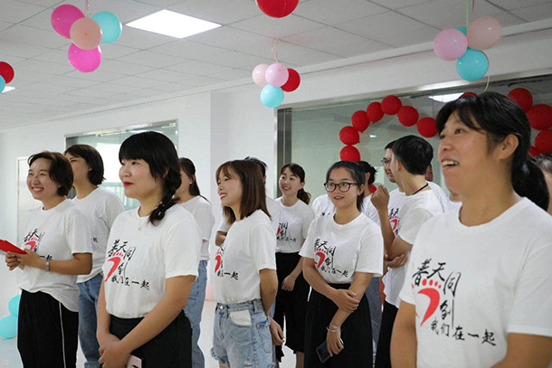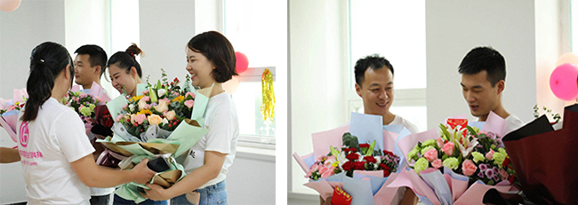 為了保持壽星的神秘感,由主持人描述壽星的特征,然后由公司所有員工參與搶答競猜,猜中后會有驚喜禮品相送。隨著4名壽星陸續走出團隊站于臺前,小伙伴們為他們唱起生日歌、送上生日祝福,公司領導為他們準備了生日大紅包和鮮花。