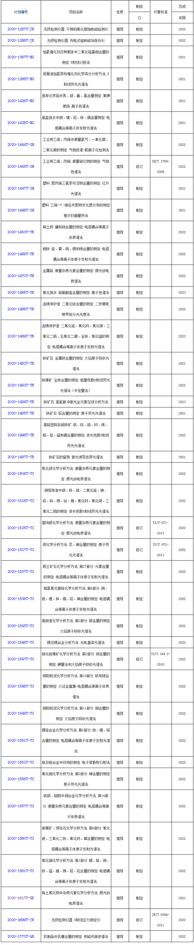 從項(xiàng)目計(jì)劃匯總表可看出,這一批標(biāo)準(zhǔn)涉及有色、建材、電子、化工、鋼鐵、機(jī)械、輕工、紡織、船舶、石化等行業(yè),其中有多項(xiàng)涉及儀器分析方法,包括X射線衍射法、X射線熒光光譜法、離子色譜法、電感耦合等離子體發(fā)射光譜法、氣相色譜-氦離子化檢測法、紅外光譜法等。